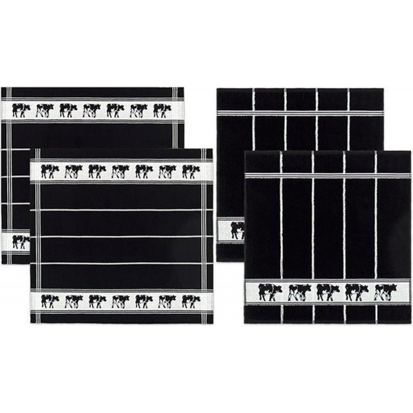 DDDDD Koe 2 Keukendoeken & 2 Theedoeken Zwart