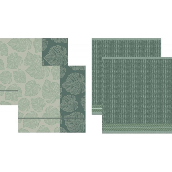 DDDDD Monstrea 2 Keukendoeken & 2 Theedoeken Groen
