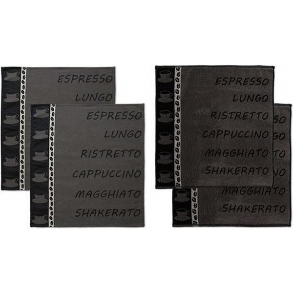 DDDDD Ristretto 2 Keukendoeken & 2 Theedoeken Antraciet